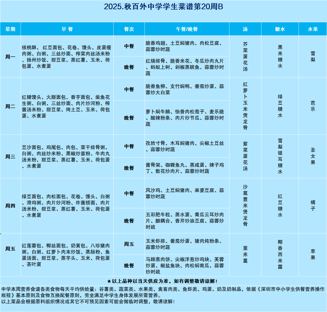 百合外国语2025-2026上学期-第20周学生菜谱