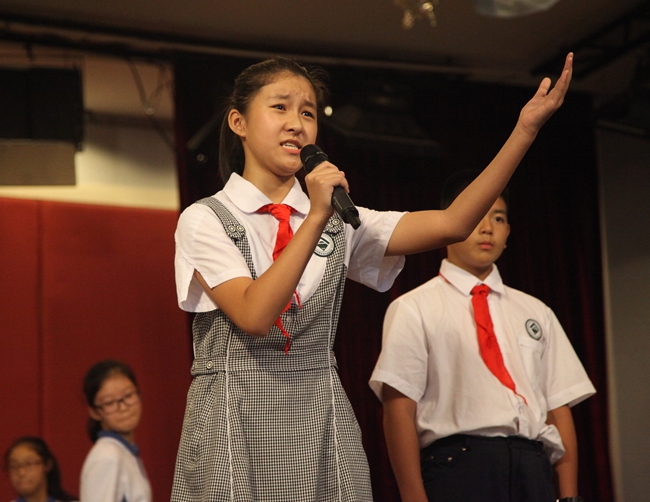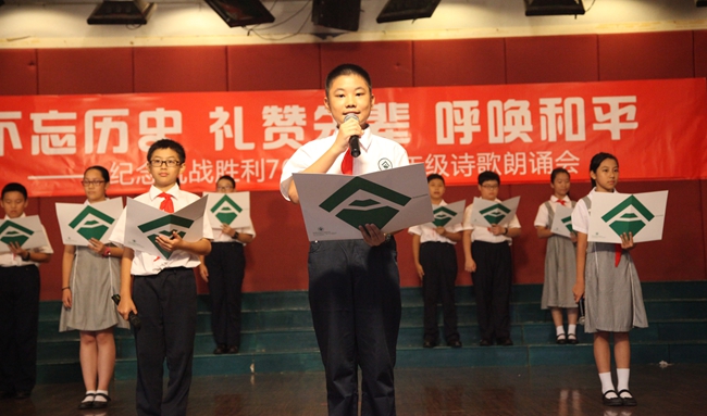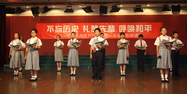 初一年级举行纪念抗战胜利七十周年诗歌朗诵会