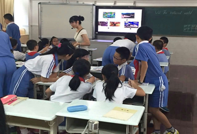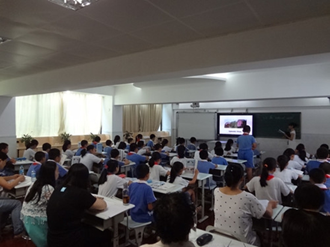 首先,我校初一英语组老师们聆听了该校六年级一堂主题为“The Natural World”的公共课,授课老师郑老师通过一首歌曲Good Time导入,同学们马上集中注意力,欢快地齐声歌唱。课堂内容丰富多样,包含跟读模仿、朗诵诗歌、谚语翻译、生活常识等;课堂组织井然有序,郑老师通过领读、提问、分组互动和小组竞赛等方式控制课堂,同学们热情参与,认真聆听与回答,在轻松活跃的氛围中学得不亦乐乎!从本次精彩的课堂中不难发现,尽管已是一位富有经验的老教师,郑老师通过自身的学习,不断更新和拓展自己的知识,展示自己的教师风采和个人魅力。