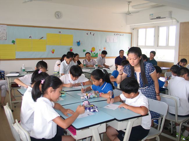 上午9点钟,我校老师到达百仕达小学,受到了熊校长的热情接待。9:10分,我校老师在熊校长的陪同下,欣赏了一节别开生面的《圆的周长和面积综合练习课》。李老师精心设计的课程结构以及从简单到复杂的题目设计,获得了我校老师的一致好评。孩子们在课堂上表现积极,大方的讲解题目,展示了他们深厚的学习功底。孩子们在讲解题目的同时,熊校长也参与了课堂,并向孩子们提出了一些问题,为课堂增添了光彩!