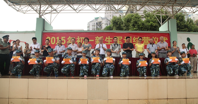 9月2日下午3点,我校2015级新生军训表彰大会暨阅兵仪式在操场举行,我校全体行政领导、初一老师以及新生家长们共同参与了检阅。
