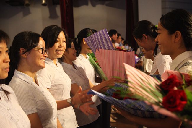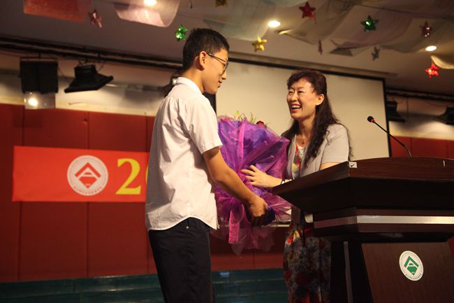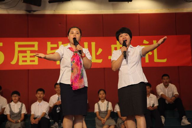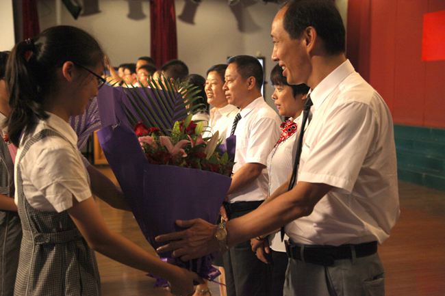 活动第二项内容是极具艺术价值的毕业典礼活动。在百合外国语学校砺练了三年的学子们充分展现了他们的艺术修养和艺术本领,以朗诵、短剧、诗配乐、文配画、歌唱等艺术形式表达了对母校、对初中三年的青涩时光的浓浓的眷恋和淡淡的离愁。当二十个学生代表在熄了灯的黑暗礼堂里手捧蜡烛缓缓走上舞台、轻轻吟唱骊歌时,全体参加典礼的师生和学生家长都因沉醉其中深受感动而落下泪来;当朱校长为同学们发放毕业证时,全场师生和学生家长又激动地沸腾了起来,同学们喊着各班的口号,家长们不停地按下相机快门键。当十个班主任依次作临别的最后赠言时,全场气氛时而激动沸腾,时而阒静温馨。最后陪伴了15届毕业生三年的杜主任宣布毕业典礼结束,孩子们没有了往日周五集会时的欢呼和吵闹,却多了一份沉重和稳重。