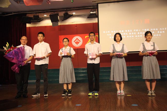 活动第一项内容是极具纪念价值的拍毕业照活动,虽然正值雨季、台风季,骤雨忽至,但一点都不能稀释同学老师们的兴奋和激动。大家冒着雨,在学校南北楼之间的风雨通道上,以邓小平的教育的四个面向为背景墙,拍了各个班级的毕业照。