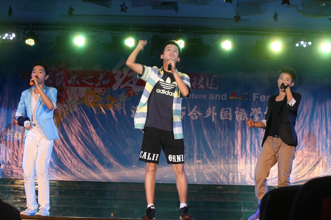 下午1:30分,演出在六楼演艺厅正式举行,校园管弦乐团一首由我校蒋崇斌老师改编的乐曲《卡农》开场,气场高雅,氛围欢快热烈;紧接着,校合唱队两首优美的歌曲《天空之城》和《美丽的夏牧场》美妙的和声把大家带入了清新悠远的旷野;男生集体舞《一路前行》和女生集体舞《花儿为什么这样红》是我校舞蹈队同学的巨献,不仅表现出了中学生的青春活力,也展示了他们精湛的舞蹈技艺;话剧《致生命》是初一年级课本剧展演中的优秀节目,初一(9)(10)班的同学们演绎了课堂上老师为同学们讲述二战时期一件真实的事情,让大家感受到生命的可贵;校园剧《国韵》、童话剧《爱丽丝梦游仙境》和器乐歌舞锦集《快乐小苹果》是初二年级文艺汇演中的优秀节目,不仅展示了初二年级同学们的想象与创新能力,更体现了他们对表演的热爱。歌曲《超级英雄》是初二(8)班三名阳光男孩为艺术节带来的特别献礼,展示了他们时尚阳光的气质;校园小乐坊在每一场汇演节目中都不曾缺席,今天,全新的小乐坊为我们带来了两首经典乐曲《笑傲江湖》和动漫音乐《龙猫》,受到了现场观众的一致好评;汇演的最后一个节目《感恩之旅》是初二(9)(10)(11)班的集会展示,他们把我校传统活动“周五集会”搬上了艺术节的舞台,让校友们重温了这熟悉的每周聚会,也让新生家长和社会各界人士了解了我校校园文化,节目中充满了积极阳光的气息,同时也感动了现场每一位观众,演出在大合唱《时间都去哪了》中落下帷幕。