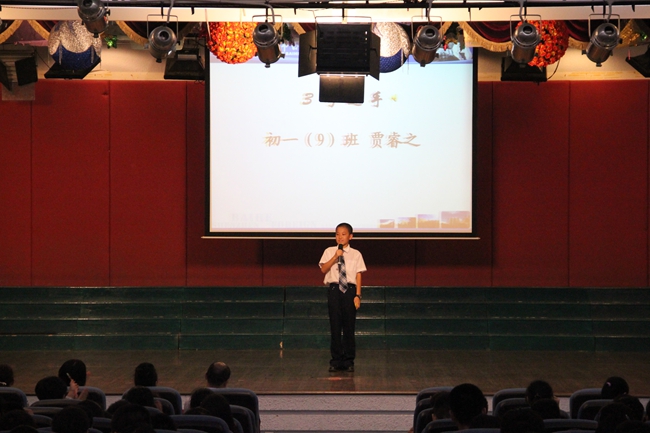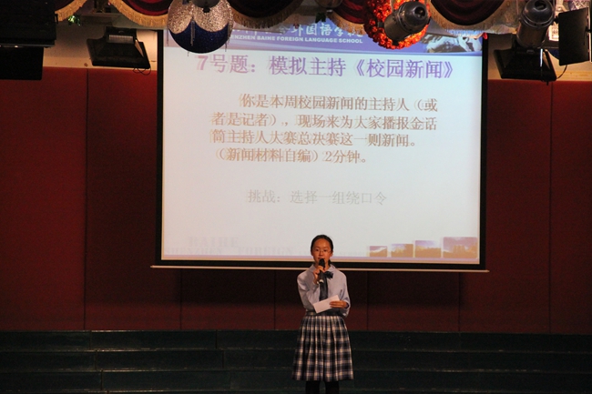 5月17日晚上7点,我校第十三届艺术节系列活动之“金话筒”主持人大赛决赛在六楼礼堂开赛,初一年级的全体师生和朱校长等行政领导共同观摩了本次比赛。通过海选,共15名选手站在了本次比赛的舞台上。比赛中,他们深情的演讲打动了每一位观众,赢得了阵阵掌声。模拟主持和即兴问答都彰显了他们流畅的语言表达能力和灵活的思维。在“绕口令”的挑战环节中,更是给大家带来了惊叹与欢笑,最后朱校长为本次比赛做了总结。