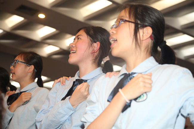 大会在各个班级组的宣誓中走向高潮。舞台上领誓人与台下班级组学生默契配合,班学生或高举紧握的拳头、或右手紧贴胸膛、或手拉手、或肩并肩,表现出激情、团结、庄严、向上的精神力量。豪壮的誓言,热烈的场面,令全场热血沸腾!