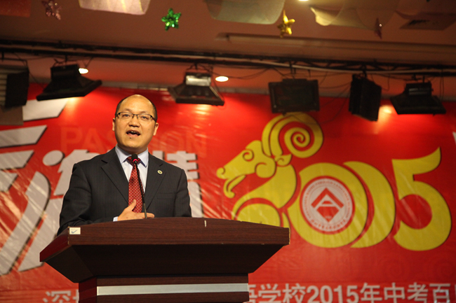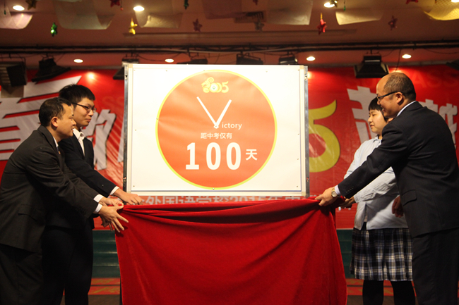 初三年级杜主任慷慨激昂地致开幕词并宣布“2015年中考百日倒计时启动”,接着他邀请朱校长以及两名学生代表为“2015年中考百日倒计时牌”揭牌。随后,朱校长语重心长地讲话,给学生、老师、家长送去了信心和鼓励,也表达了学校对本届中考的殷切期望;初三个备课组教师代表,或用幽默的言辞、或以深情的话语、或用激昂的呐喊,给学生送来了“备考法宝”。
