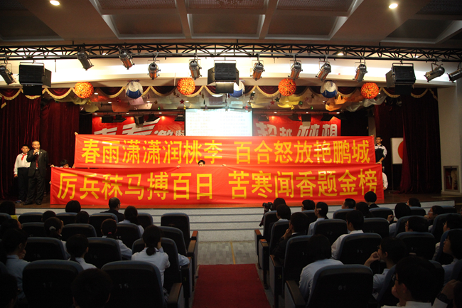 3月8日,时值国际妇女节,我校隆重举行了2015年初三中考百日誓师大会。19时整,初三全体师生、初三部分家长代表、初一初二年级学生代表齐聚六楼礼堂,满怀期待地准备迎接这庄严时刻地到来。