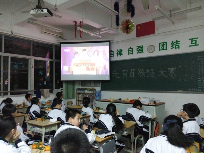 2015年3月6日的午餐时间,学校食堂特意准备了热腾腾的汤圆,同学们吃在嘴里,甜在心里。一名初一的同学边吃汤圆边告诉老师:今年是他第一次在外过元宵节,没有父母亲人的陪伴,本以为这个节日会过得很冷清,没想到却能和这么多同学一起吃元宵,让他感受到了家一般的温暖。晚上七点,各班以班级为单位齐聚教室,举办了猜灯谜、看晚会、送祝福等系列庆祝活动。学校还专门为各班准备了桔子、花生等食品。校园各处张灯结彩,师生欢聚一堂,洋溢着浓浓的节日喜庆气氛。又一个思念夜晚,又一段幸福时光,又一次真诚祝福在师生的心中悄悄传递。