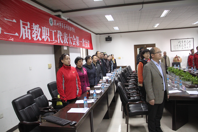 深圳市百合外国语学校二届一次教代会于2014年12月13日(星期六)上午在我校一楼会议室胜利召开。与会代表31人,列席代表7人。新一届工会主席瞿伟明老师主持了会议。