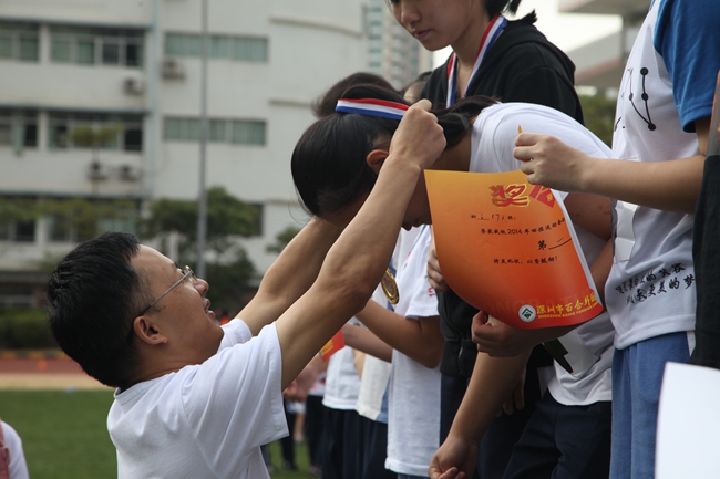 回顾一周的活动,入场式中各班级组方阵那昂扬的精神、矫健的身姿,风格各异的风采展示,整齐的军体拳表演,扣人心弦的初三拔河3、4名、1、2名争夺赛,教师的“袋鼠跳”四队争霸赛,都给我们留下了深刻的印象和美好的记忆。短跑运动员风驰电掣的速度、中长跑运动员坚忍不拔的毅力,接力赛的紧张刺激,初一“袋鼠跳”,初二“ 多足虫”竞走接力赛的团结合作,无不让我们体验到了运动的魅力和快乐。充分体现了本届体育节“我运动我阳光、我运动我快乐、我运动我健康”的主题。本届体育节的各项赛事活动进行的有条不紊,紧凑而高效,成果喜人。除军体拳表演和趣味比赛项目外,共有1767人次参加了11个田径运动项目的比赛,有79人次打破11项年级记录,有11人次打破校运会记录,陈可凡等14名同学获得了“体育之星”的光荣称号;昨天和今天(11月27日和28日)两天的运动会共颁出奖牌328枚;有9个班级获得了团体总分奖,9个班级获得了精神文明奖;8个班级组,共17个班级获得开幕式检阅奖;大会宣传组共收到稿件6915篇,其中优秀稿件2086篇。