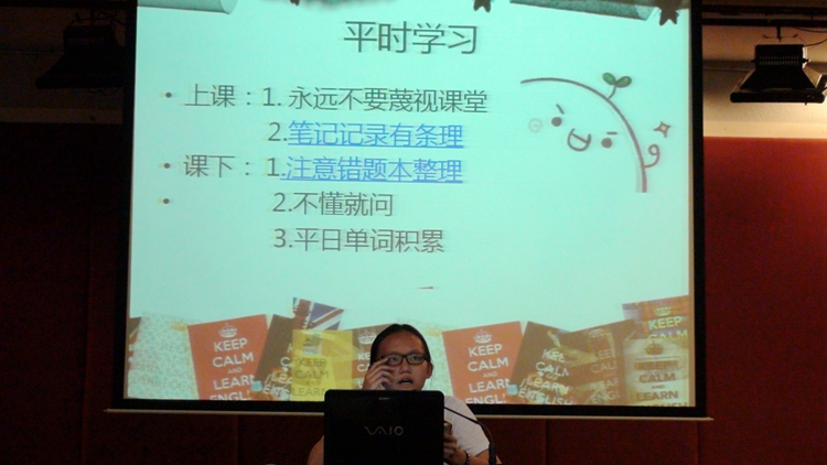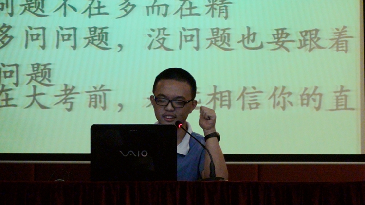 六位优秀毕业生代表分别是常方圆、陈智彬、丁奕萌、杨擎昊、高瑜含、姚文欣。他们分别从语文、数学和体育、英语、化学和物理、历史、综合学习方面作了详尽的经验介绍,介绍过程中反复强调了拼搏精神、良好心态、紧跟老师的重要性。学法指导之余也真挚地表达了对母校和老师们的热爱与怀念,这样不仅指导了初三学生的学习方法也渗透了感恩教育,使整场报告既有理性分析的冷峻光辉,更有传递温暖的美好情怀。