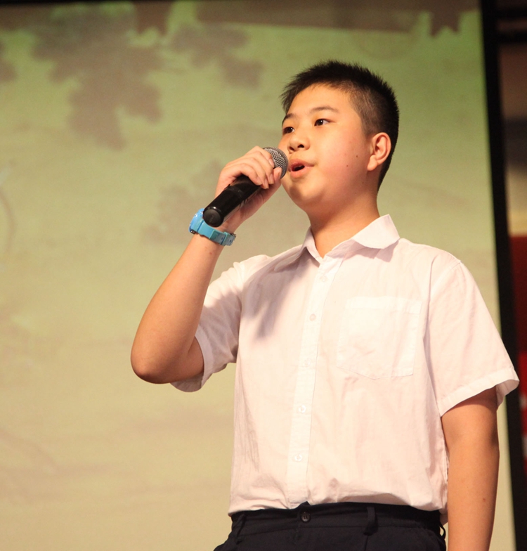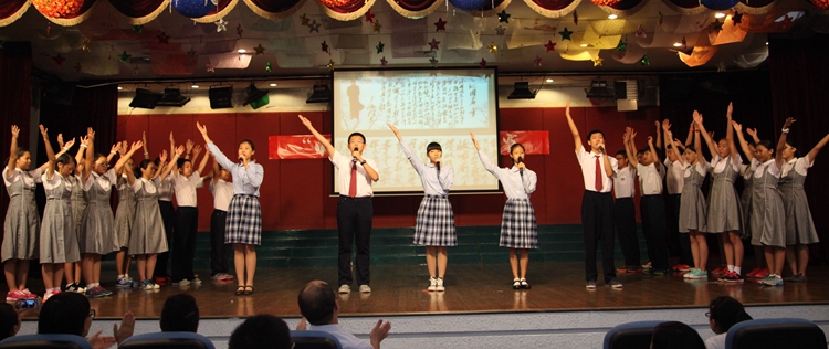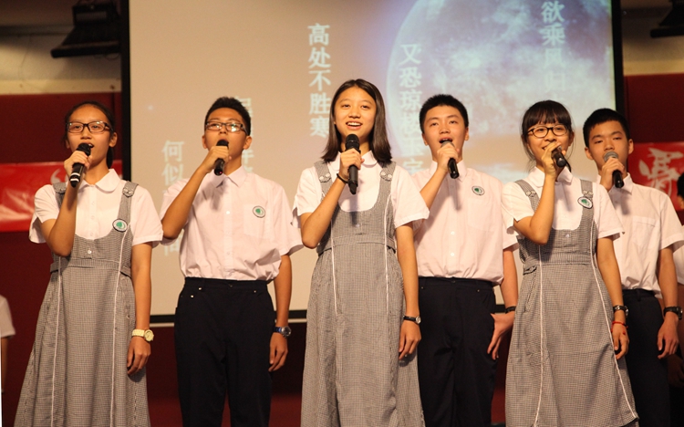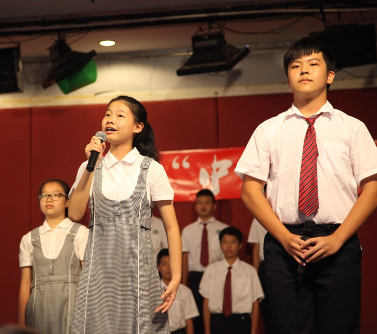 当日下午4时许,活动正式开始。五个班组选拔出的代表都做了精心的准备。初二(1、2)班组的《唐诗宋词铸国魂》带观众领略了唐朝的繁荣,宋朝的清雅,以婉约与豪放的诗词韵律征服了观众;初二(5、6)班组的《金秋皓月》重现了传满诗情画意的当空皓月;初二(7、8)班组用一曲《祖国,我用青春为你歌唱》回顾了屈辱的近代史,并展望崭新的未来;初二(3、4)班浩瀚的《长歌浩叹唱古今》与我们一同回首五千年文明长河上的璀璨明珠;最后,初一(9、10、11)班组用激昂壮阔的朗诵《我的中国梦》引起全场共鸣,强烈表达了新一代青少年复兴祖国的愿望。