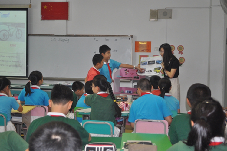 为做好初中、小学教学上的过渡与衔接,课组老师深入六年级课堂听了两堂高效英语课。东海小学的第一位老师开头便利用歌曲来调动了学生的积极性与参与度。随后的Class Report中,三个学生站在教室前举行了自己编排的脱口秀,让我们见识了东海小学学生近乎完美的口语。在学生高度的热情中,老师引出本堂课的主题window shopping。在解释语法和方面,东海小学的老师运用了图片,小组讨论,表演,做调查等一系列方式来调动学生的积极性。通过这些活动,学生不仅练习了本堂课的主要句型,同时又训练了口语表达能力。尤其是最后的跳蚤市场活动更是将本堂课推向了一个高潮。