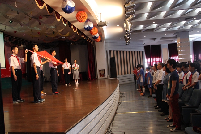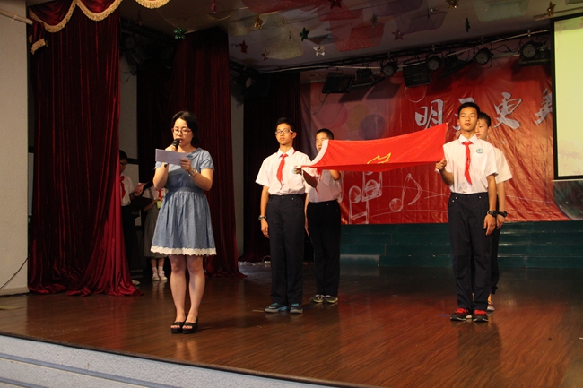 5月29日下午4:00,我校初一年级的同学们在六楼礼堂举行了简单而又隆重的少先队退队仪式,今天也是在提前欢度了他们的最后一个儿童节。
