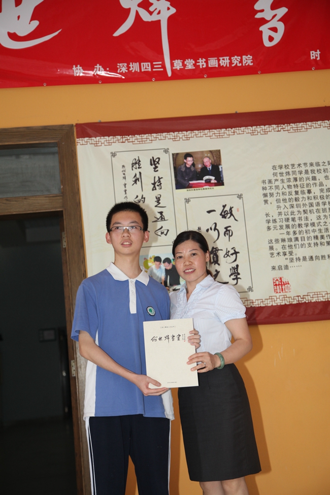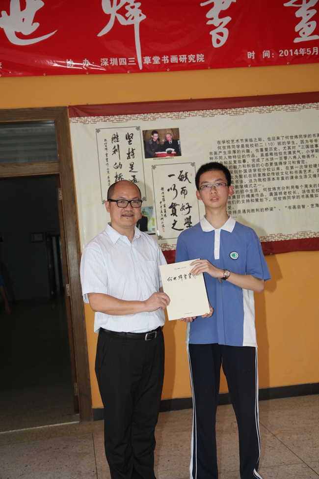 5月19号,迎来了我校的第十二届艺术节,初二(10)班何世炜同学个人书画展开展仪式也如期在学校三楼艺术中心隆重举行。这是我校举办的第一个学生个人书画展,为精彩纷呈的艺术节增添了一笔靓丽的色彩。