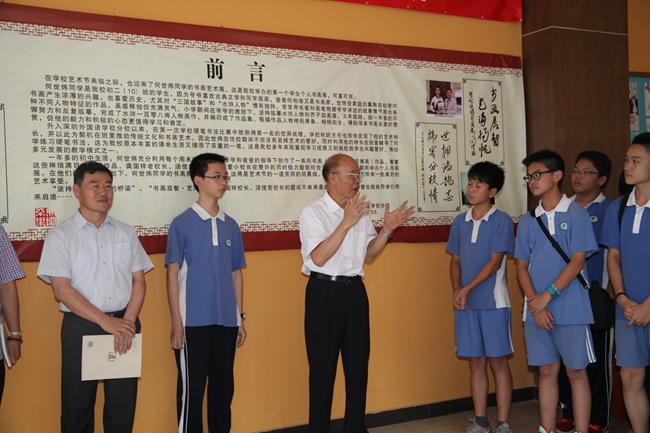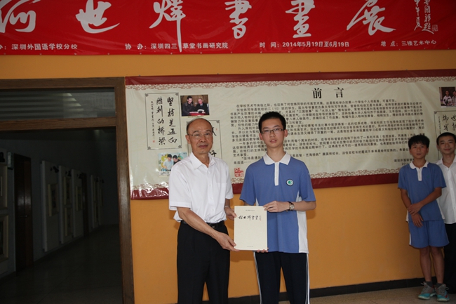 出席开展仪式的有深圳外国语学校老校长龚国祥先生,深圳外国语学校校长汤佳宏先生,百合控股集团董事长凌国强先生,总经理凌国庆先生,深圳外国语学校分校校长欧阳爱小及副校长朱正兴等领导, 陪同前来的还有何世炜同学的父母和爷爷。这次画展还引起了媒体的关注,青少年报的主编和特区教育等报社记者参加了开展仪式。在欧阳校长的主持下,龚校长、汤校长、凌董事长等领导都发表了讲话,大家对世炜同学的艺术水平给予了高度的评价,并勉励世炜同学坚持这份艺术的爱好,创作出更加优秀的作品。