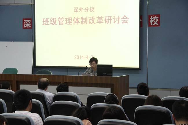 成功的花,人们只是惊羡它现时的鲜艳,然而它的当初,却浸透了泪水,洒遍了牺牲的血雨。深外分校不仅仅只是脚踏实地的践行者,更是仰望星空的开创者。当人们都在享受自己的清明假期时,在学校学生处姜主任的精心策划下,为使深外分校的德育水平再上新台阶,全体教职员工欢聚一堂,在学校一楼报告厅召开了一场别开生面的班级管理体制改革研讨会。