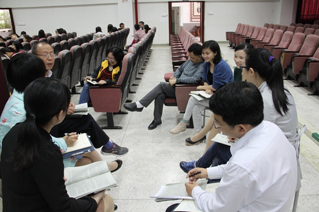 4月7日上午9:00,由朱副校长致辞并宣布大会开始,大会由以杜双全老师为代表的12人轮流发言,总结我校三年来班改的成功经验与亟待改进的不足。杜双全老师的“从细处着手,从易处着眼”,李普军老师的“心在哪里,哪里开花”,白桂珍老师温暖的“我们”……都给大家留下了极深的印象。整个上午老师们都在专注聆听,会场不时响起一阵阵热烈的掌声。下午2:00,分组讨论开始,大家畅所欲言,为班改的深入献计献策。下午3:00,初一、二、三年级,教辅后勤和生活部各选一名代表将讨论的成果进行纲领性汇报。最后欧阳校长对三年的班改工作给予高度肯定和总结: