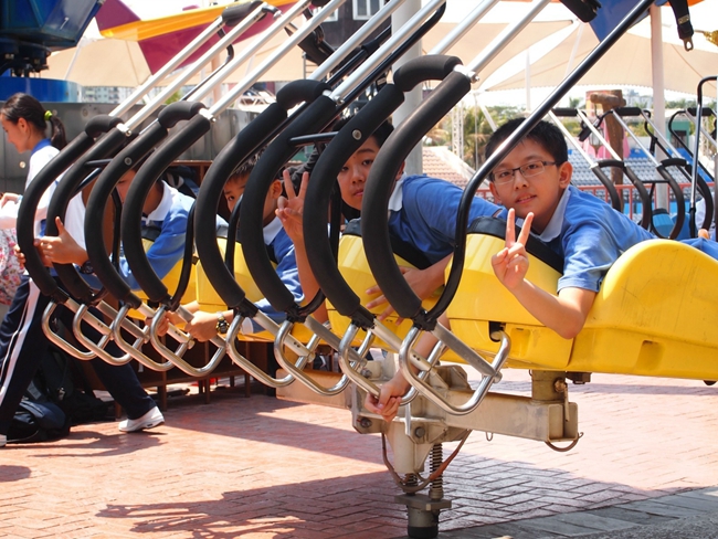 恰恰大草帽,浪花跳跳,青蛙跳跳,旋转木马,摇摇蘑菇屋,学生们再一次和自己的同学一起重温童年;丛林狩猎,雪山飞龙,激流勇进,完美风暴,发现者,激光战车,太空梭,是一次次身体与心理的极限挑战,很多学生从设备上下来,全身湿透,但脸上笑容灿烂,也有的以前来过但从没有敢于去尝试,这一次在同学好友的带动下终于战胜了自我,克服了心理障碍,那种发自内心的喜悦溢于言表,更有很多老师和学生同玩一个游戏项目,增进了师生的情感,拉近了师生的距离。