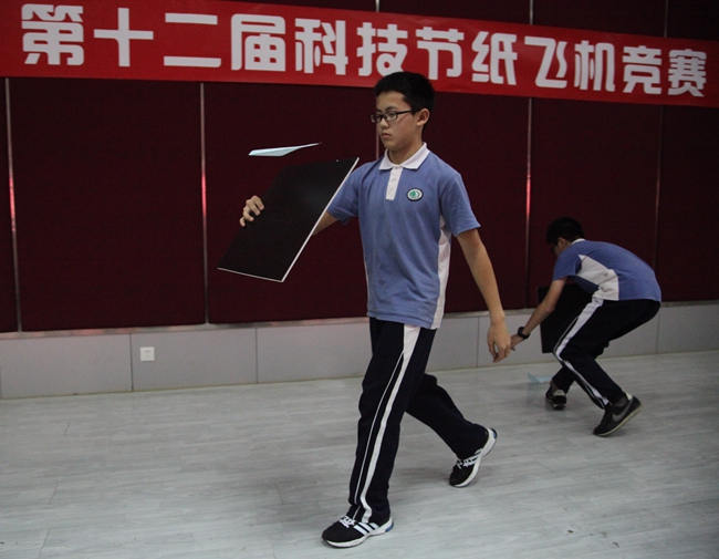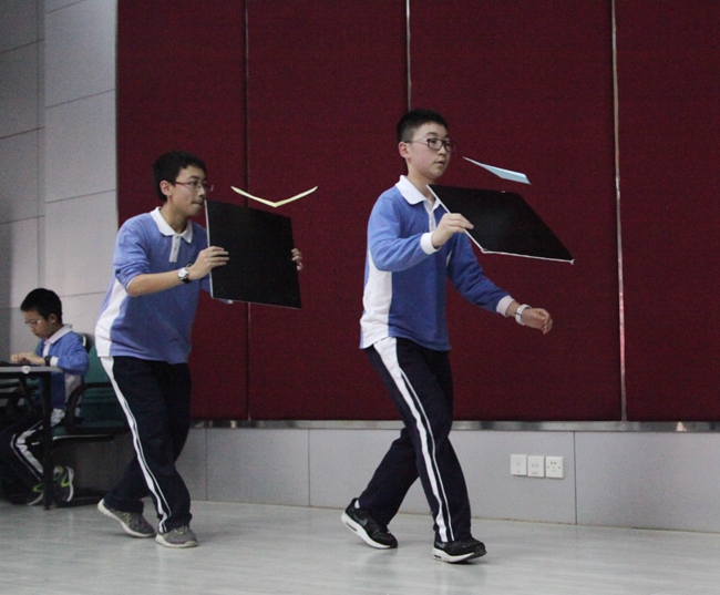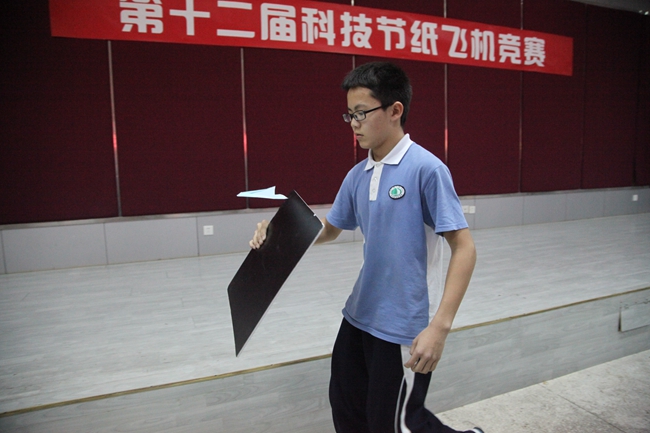 自从上周听过刘东老师关于冲浪纸飞机的讲座之后,同学对冲浪纸飞机的活动表现出极大的热情。冲浪纸飞机是运用简单的空气流动力学知识来掌控纸飞机的飞行,同学们根据这个原理在校园的各个地点进行练习。这项运动不仅要求同学要有很好的控制力和反应能力,是否可以折出一个平稳精致的飞机也是飞行的关键。本次比赛以班级为单位,每班选派2组,每组由一位同学操控纸飞机,计算飞行时间决出胜负。每组选手操作3次,取平均时间计算成绩,最后以两组选手的平均时间作为班级的最终成绩。下午4时,在姚燕君老师宣布比赛开始之后,各班派出的小飞行员一一大显身手。在比赛的过程中,选手们的表现都很好,场外的同学热情高涨,欢呼声此起彼伏,而在比赛过程中,来自初一(9)班的朱子天同学的表现尤其出色,他在整个比赛过程中沉着冷静,对纸飞机的掌控收放自如,当他操控的纸飞机飞出2分26秒的好成绩之后,整个会场的气氛达到了高潮,全场的师生都为朱子天同学的精彩表演欢呼鼓掌。