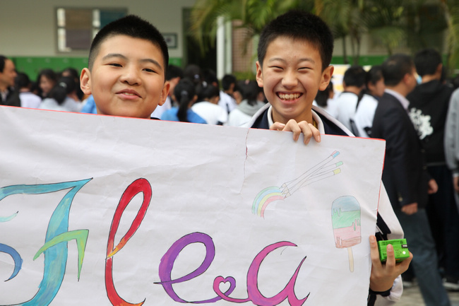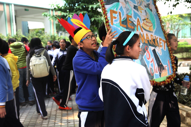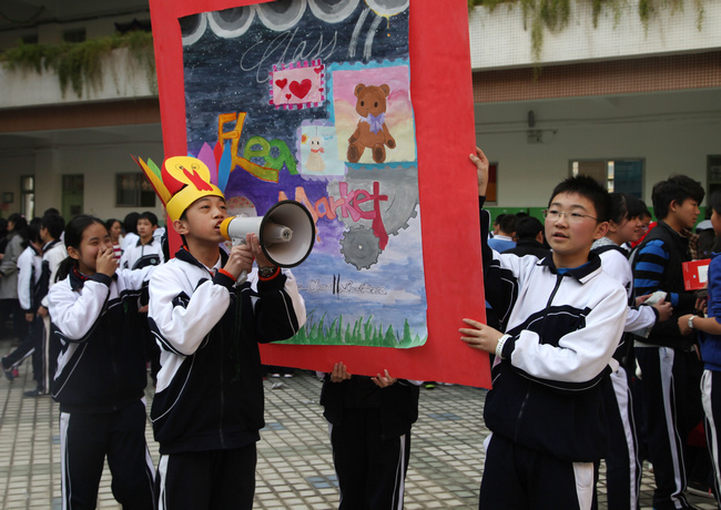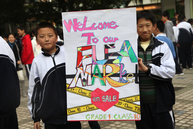 在本次活动中,同学们以班级为单位在校园里临时搭起了摊位。活动一开始,整个校园人声鼎沸,来参观的师生络绎不绝。只见各个摊位上都摆满了琳琅满目的商品。一些孩子用英文卖力地吆喝着广告,一些孩子耐心地为老师顾客们介绍各种产品的性能,一些孩子巧妙地与顾客讨价还价,分毫必争。为了能提高销售额,各个班级的孩子都使出浑身解数,通过表演,游戏,买一送一,打折销售等方式吸引顾客的眼球,从而达到销售产品的目的。除了各班的摊位之外,学生会同学设立的爱心捐助摊位也特别惹人注目,他们现场收集了同学们捐献的旧衣物、旧书籍和文娱用品等共计700余件,准备在活动结束后邮寄到云南贫困地区的某小学。而各个班级爱心义卖所得的款项,也将汇集起来,适时捐献给慈善机构。