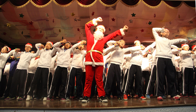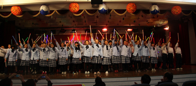 随后出场的初一年级也毫不示弱。初一(5)、(6)班组激情演绎了《What makes you beautiful》;初一(7)、(8)班组 演唱的《Christmas songs》感染了全场观众;初一(9)、(10)、(11)班组演唱的《Waving flag》更是依靠他们强大的阵容将整个活动推向了高潮;初一(1)、(2)班组演唱的《Firefly》证明了他们的青春与活力;最后出场的初一(3)、(4)班组演唱的《Lucky》也让大家眼前一亮。