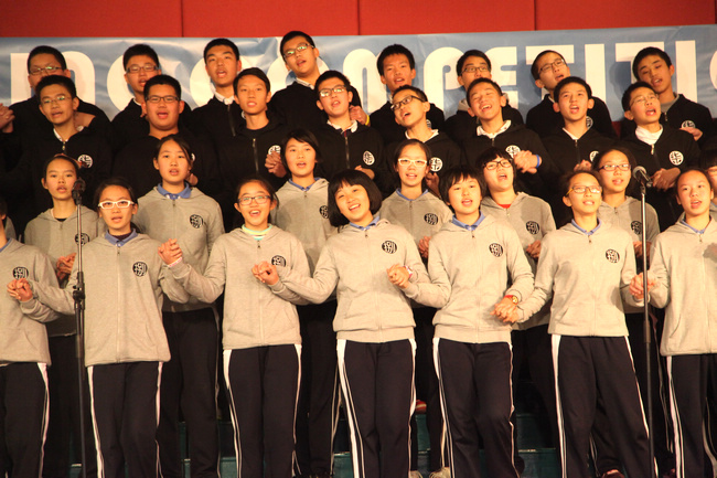 12月23日下午,我校在六楼礼堂举行了外语歌曲合唱比赛。
