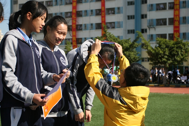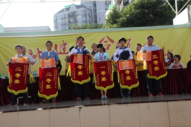 周五下午2:30分,体育节闭幕式在操场举行。学生处姜主任主持了闭幕式并为本届体育节进行了总结,同时宣布了各年级各班在各项活动中取得的成绩,现场为获奖班级颁发了开幕式检阅奖、精神文明奖和团体总分奖等三项大奖。欧阳校长在闭幕致辞中肯定了老师和同学们为本届体育节付出的努力,极力表扬了工作人员团结协作、任劳任怨和一丝不苟的工作态度,同时还为同学们在运动会中所取得的成绩喝彩。
