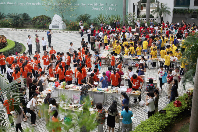 这是我校第一次举办美食节,学校行政会一开学就对此次活动展开了讨论。学生处姜主任数次召集相关人员开会,反复研讨,通过与其他各个部门协调配合,也得到了家长们的大力支持,才使得此次活动顺利圆满的开展。我校建校十一年来,外语节、艺术节、科技节、体育节四大节日办得红红火火、颇具特色,让人津津乐道、回味无穷。本次美食节的举办,又为我校繁荣的校园文化锦上添花。正如朱校长在接受校园电视台记者采访时所说的:“美食节”有望成为分校四大传统节日之外的又一大“特别节日”。