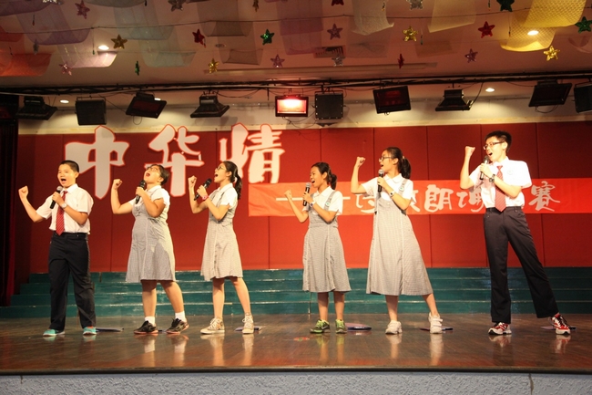 金秋十月,我们迎来了祖国母亲六十四岁华诞,为庆祝这神圣的节日和激发同学们的爱国热情,9月26日下午初二年级在六楼礼堂举行了“中华情”诗歌朗诵会。以班级或班组为单位,同学们把对祖国的热爱和赞美渗透到句句铿锵的诗句里:从对祖国母亲深处灾难时的回顾的哀伤,到革命先烈们抛头颅洒热血的回放;从中华儿女一代代的梦想,到今天祖国屹立在世界东方的颂扬;有身为中华少年肩负使命的提醒,更有少年中国应有的担当。