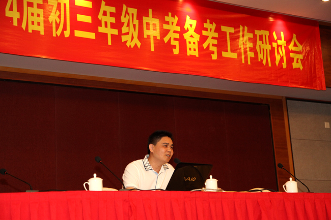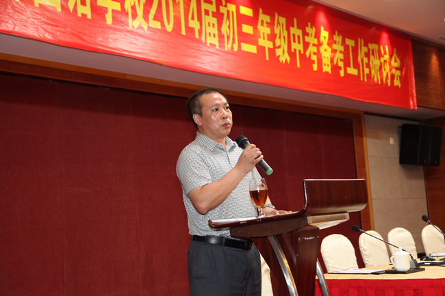 汤佳宏校长在祝贺2013届辉煌成绩的掌声中开启了研讨会的序幕,提出了本学年的工作要点:全体领导、师生精气神足是前提,方法正确是保证,落实到位是根本,充分发挥“双核”(班主任和备课组长)的引导作用和执行力,班主任认真负责,备课组长顾全大局,同时年级组和谐合作,凝聚战斗力,必将实现2014届的可喜成绩。