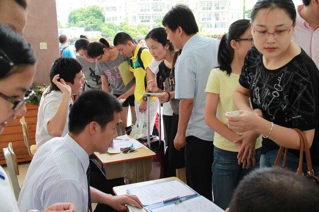 下午1点多,新同学在家长的陪同下,在学校老师和同学们的热情指引与帮助下,很顺利地找到了自己所在班级和宿舍。来自初二各个班级的迎新志愿者们,主动给新生带路并帮他们拿行李,让初来乍到的初一新生感受到了分校的温暖氛围,也让新生家长们倍感安心。下午4点半,初一新生家长会在六楼礼堂举行,欧阳校长、朱校长、姜主任、年级主任瞿伟明老师等出席了家长会,通过家长会向家长们简要介绍了学校的基本情况及分校管理理念、教育方式。