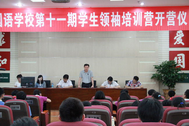 2013年7月10日上午9点,在高中部负一楼会议室,我校学生会、团委学生领袖14人,与来自初中部、高中部、附小的学生领袖代表聚首,举行深圳外国语学校第十一届学生领袖培训营活动的开营仪式,会议由高中部团委书记林吉老师主持,汤佳宏校长出席会议并发表讲话,勉励学生干部要不断努力提升自己。
