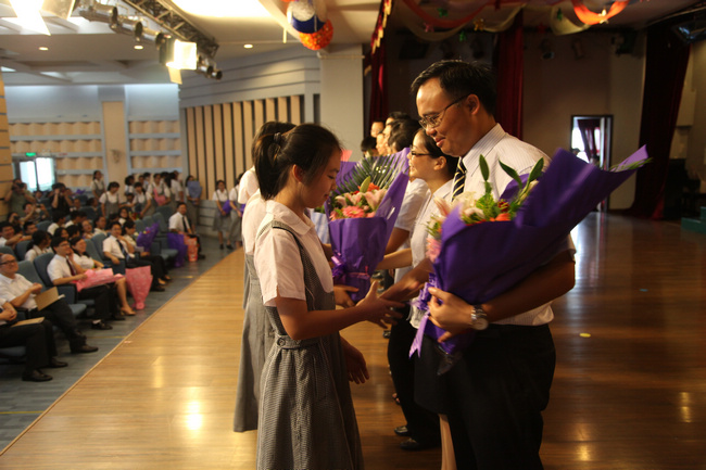 一年一度,凤凰花开,百年一遇,铁树绽放。离别的忧伤和放飞梦想的喜悦一并涌上心头……主持人用撩动人心的词句,拉开了毕业典礼的序幕。在高唱国歌之后,初三(2)班方滢同学代表全体初三的同学发言,表达了即将毕业的同学们对老师、父母的感激和对分校的不舍。送给每个曾经教过他们的老师予鲜花,告诉他们,同学们从来没有忘记亦师亦友的老师们;送给每个现在教着他们的老师予鲜花,倾诉同学们对他们的爱和感恩。这是感动的一刻,在方滢同学发言后,初三的学生代表们为每一位老师都赠上了一束鲜花。教师代表陈杰老师深情的话语饱含了对羽翼已经丰满,即将飞向更辽阔天空的毕业生的依恋与祝愿。毕业生家长代表吴仁辉中先生代表全体家长发表感言,表达了对老师们最真诚的谢意,也表达了家长对孩子们爱和祝福。毕业证书颁发时,年级主任李俊义老师和教务处梅主任念出了所有毕业生的名字,朱校长和欧阳校长亲自为他们颁发了毕业证书。