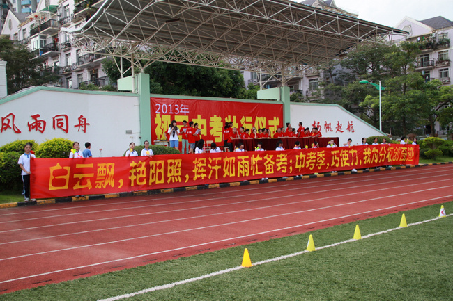 仪式最后,我校全体师生高声齐唱《加油歌》,为初三的将士们壮行。在掌声和欢呼声中,他们跑步离场,踏上了“决战中考“的征程。