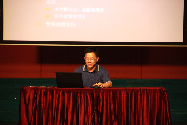 会议由欧阳校长亲自主持。会上,教务处梅主任将志愿填报注意事项精辟地概括为“四了解、三结合、二预估、一选择”,进行了深入细致的解读,并就家长关心的“指标生”、“特长生”的填报作了悉心的指导,让学生和家长明白了志愿填报的重要性、严肃性。
