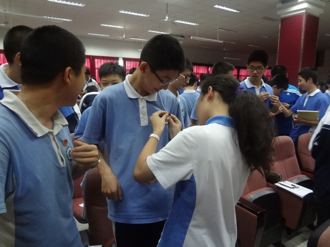 首先,老团员代表、团干部梁懿郎同学代表老团员讲话,表示自己作为一名共青团员非常自豪,也祝贺和欢迎新团员的加入。同时,梁懿郎和李龙媛同学还为大家再一次做了入团培训,并指导大家填写入团的相关材料。之后,全体新团员举行了宣誓仪式,团委邱书记和老团员们共同为他们佩戴了团徽。邱书记在讲话中再次祝贺新一批入团的同学,也表达了学校对他们的期待,希望大家能为早日成为国家栋梁之材而奋发努力!2012-2013学年年第二学期新团员入团仪式在响亮的《中国共青团团歌》歌声中圆满结束。