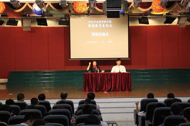 本次活动,我校特地邀请了深圳广播电台先锋898著名主持人吉祥和小妹,与同学们畅谈理想、畅谈人生。初一年级全体同学以及初二年级广播电视传媒中心的全体成员观摩和参与了本次活动。小妹老师从生活中的语言艺术切入,为大家阐述了语言在生活当中的重要地位,同时也通过实例,为大家介绍了生活中言语沟通应该注意的问题。吉祥老师则通过自己的亲身经历,和大家谈及了主持人须具备的素质、生活中常存在的语言误区、交流面试中的语态和仪态以及艺考相关知识,通过与同学们的互动,让同学们在体验中学习到了主持技巧,较强了沟通交流的能力。两位老师生动有趣的讲课和与同学们之间开展的互动都使整场讲座充满愉悦的氛围。最后的交流环节,我校同学们的提问显精炼,两位老师的回答显实效。讲座不仅让同学们学习到了语言交流和主持人的相关知识,也更加重视对语言表达能力的学习和锻炼。最后,欧阳校长为本次活动做了总结性发言,并和朱校长一起,为两位嘉宾赠送了纪念品。本次活动圆满成功。