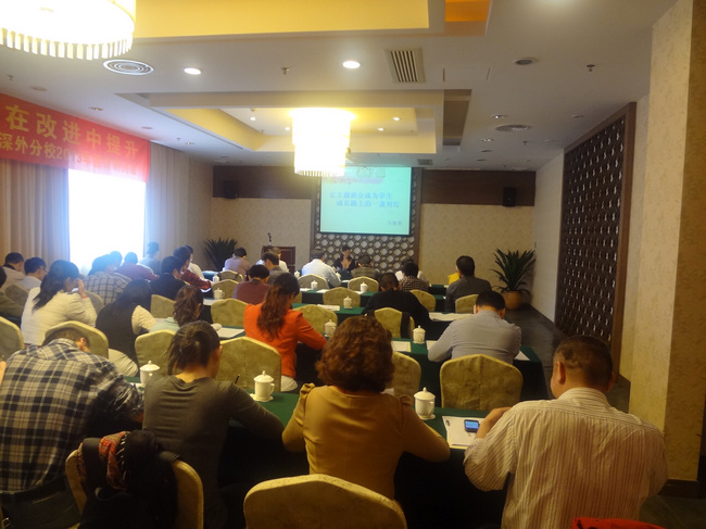 本次德育研讨会的主题是“在反思中改进,在改进中提升”。学生处姜主任主持了会议。朱校长首先为会议致辞,他介绍了每一位即将发言的班主任,赞扬了他们前期为会议所做的精心准备,并宣布了会议开始。接着,大会进入交流阶段。杜雪梅老师首先发言,她真挚的向大家介绍了她所在班级组每一个老师的特点,并谈到了他们的分工合作,也谈到了他们对班级各种性格学生的教育方式以及取得的进步;刘文立老师的发言朴实简洁,深切谈及了班改的感受,应信任学生,张扬学生个性,做到授之以渔;唐杜鑫老师的语言幽默风趣,他为大家介绍了他们班级组的详细情况,突出了他们班组老师的合力,充分利用班改资源——《学生成长记录册》的功效,让家长详细了解学生在校的情况,共同监督,促使着学生各方面的进步;黄文明老师的发言主要提及了班级学生的情况,教育中应该给予学生充分的尊重,并要以专业的素养引领家长成长,家校联合才能给予学生更好的教育;初一年级杜双全主任谈及了他对班级管理体制改革的一些思考,分析了班改过程中和教育过程中出现的一些问题,探讨我们应该做些什么来真正落实全员育人和全面育人的班级管理体制改革;裴承新老师从班级的卫生、课间操等一些小事入手,为大家介绍了他们班组对学生的培养情况,引领家长配合老师对学生进行教育,同时还通过师徒结对等途径,对青年教师进行培养,加强了班级组教师的合力;马俊英老师发言的主题是“让班会成为学生成长路上的一盏明灯”,她和大家分享了班级的实例,利用身边的资源,通过主题班会,无形中班级已经形成了良好的班风与学生良好的行为习惯;高伟老师与大家分享了她的班级管理经验——用心做教育,用爱做人师。学生处姜主任也为大家做了工作总结,通过两年的实践,我们已经形成了具有自身特色的班级管理体制改革方式和评价体制,而且正在不断完善;也为大家展示了两年以来的评价数据,包括四项评比、学情调查和学期末终评等,证明了我校教师正由经师向人师转变,学校德育氛围和效果正在发生积极的变化;此外还提出了我校班改过程中所存在的问题,并对各班级管理小组正副组长提出了新的要求。最后,欧阳校长为本次德育研讨会做了总结,他认真分析和点评了每个老师的发言,大家都是务实的,高效的;还充分肯定了两年以来我校班级管理体制改革所取得的成果,要求大家加强团队合作,继续努力,力争达到新的高度。