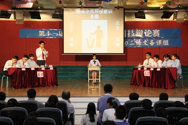 2013年3月20日,我校在六楼礼堂成功举办了由语文组承办的第十一届科技节初二年级辩论赛。