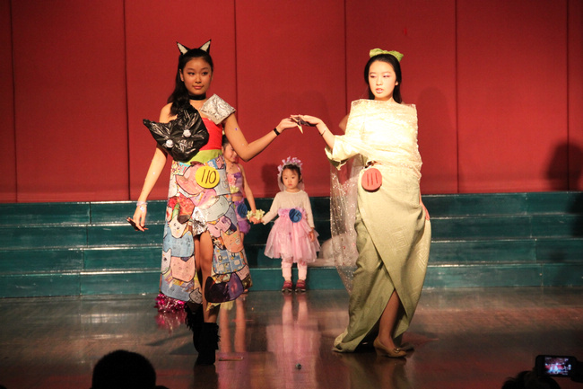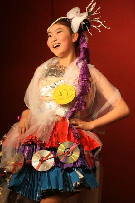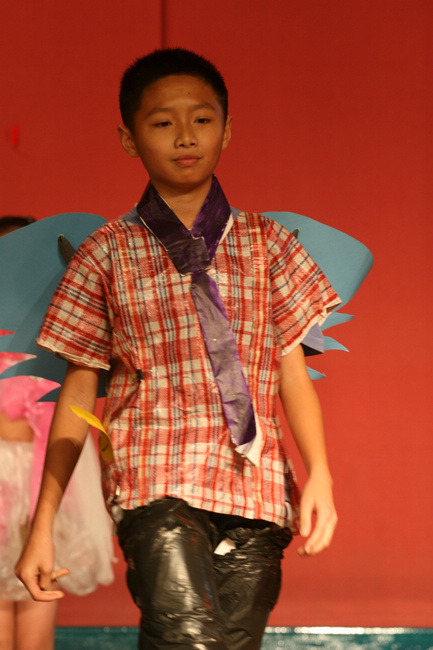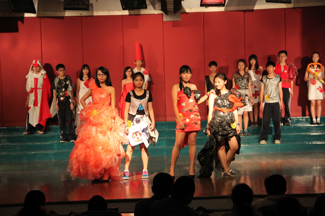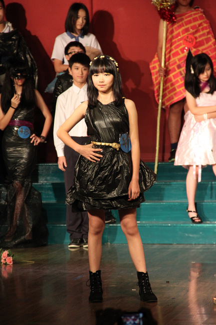 本周三下午,二年级全体师生在六楼演艺厅举行了第十一届科技节中的重头戏---环保时装秀。