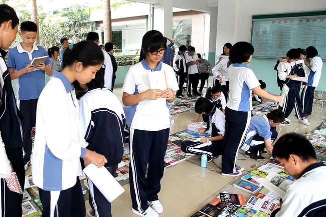 我校坚持每年都积极参与读书月系列活动,其中的读书庙会更是深受大家喜爱的传统活动。今年读书月的主题为:“阅读提升正能量“。在周一的升旗仪式上,团委邱书记就为大家介绍了本届读书月活动的主题和意义,并号召广大师生热爱阅读、参与阅读。在庙会中,各班的同学都派选了代表参加我们的读书庙会购书活动,老师们也积极参与其中,选报自己喜欢的书籍,由学校出资为师生购买借阅。也有很多同学自行参与到了读书庙会,翻阅和购买自己喜爱的书籍。