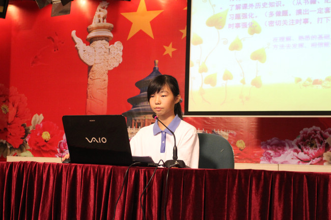 初二(1)班常方圆、初二(4)班罗敏萱、初二(1)班季青融、初二(2)班丁奕萌、初二(10)班李卉然这五位同学分别从语文、数学、英语、生物、史地学科进行了学法指导,初一新生在会场认真聆听了学姐们的报告,分享学姐们的学习经验和学习方法,并对自己在初中阶段遇到的学习问题和学姐们进行了具体的探讨和互动交流,会场不时响起一阵阵热烈的掌声。