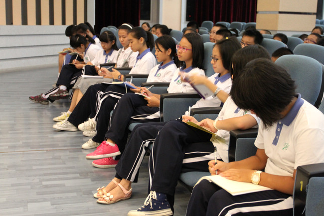 为帮助初一新生尽快适应初中阶段的学习,10月14日晚,在学校教务处的安排下,初一全体同学在六楼报告厅听取了初二的学姐们给他们做学法指导。会场气氛热烈,大家踊跃发言,积极探讨。