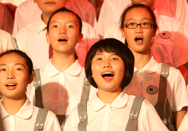 比赛由初二(7)(8)班组的一曲《我爱你中国》拉开序幕。接下来,一首首动听的、激昂的、雄壮的、宏伟的、抒情的合唱歌曲,不仅给大家带来了听觉的享受,我们心中的爱国热情也被引出。比赛中,各个合队的精彩演唱与表演,都让人惊叹。他们的演唱形式多样——有领唱、齐唱、轮唱等,有的班级合唱声部多达四个以上,并且配合默契;有的班级为合唱增添了具有表现力和烘托作用的朗诵、手语、舞蹈等;此外还有部分班级特地为“比赛歌曲”搭配了服装与道具,特别是初二(3)(4)班组,不仅搭配了亮丽的服装,还请来了专业的化妆师为同学们造型,增加了舞台表现力。最后出场的是教师队伍,他们为祖国63岁生日献上了一首《歌唱祖国》,赢得了同学们的掌声与喝彩。所有班级组都比赛完毕后,学生处姜主任为我们公布了比赛结果,并现场颁奖,初一(9)(10)班组、初二(1)(2)班组和初三(3)(4)班组分别在三个年级的比赛中夺魁。最后,欧阳爱小校长为本次活动做了总结性的发言,他赞扬了同学们的创意与合唱技巧,还教育同学们一定要努力学习,奋发自强,用自身的强大来捍卫祖国。同时他还表达了对同学们、老师和家长们双节的祝福。