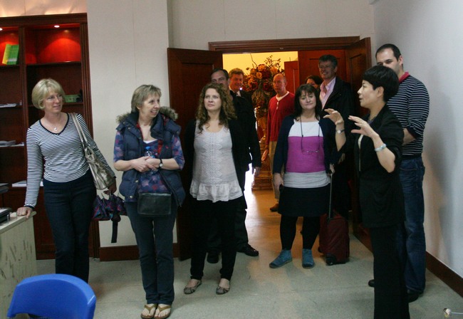 4月19日下午,由英国10位中学校长组成的参观访问团到访我校。在邬校长的陪同下,英国校长们兴致勃勃地参观了学校,并出席了初三学生的周五集会。