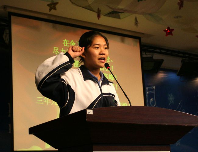 初三年级各班同学在大会上进行了庄严而隆重的宣誓。铿锵的誓言,展现了他们决胜中考的坚定信念;炽热的情感,展现了他们无畏中考的英雄气概。初一、初二的同学们也送来了他们温情的祝福:祝愿学长们决胜中考,凯旋而回!