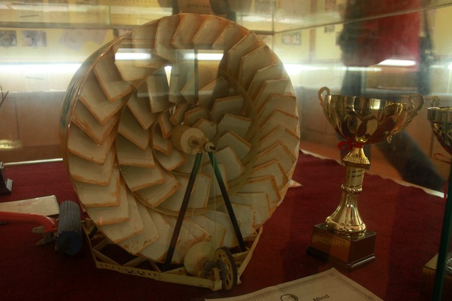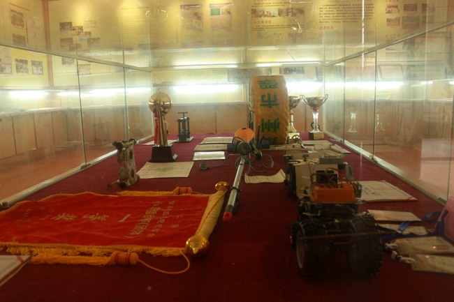 随后,戴主任带领我们参观了科技楼,并细致地介绍了学生的创造发明作品、取得的成果以及具体的操作细节。足球机器人、消防机器人、无线电定位仪等科技作品,让我们颇感兴趣;自制火箭、消防防盗两用窗、多功能自行车锁、纸桥等发明创造让我们敬佩不已;特别是把科技创新发明教育作为校本研修课程纳入常态化教学工作,让我们深受启发。