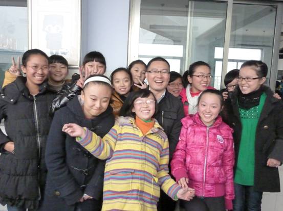 刘文立老师和河南二实验七(5)班学生在一起